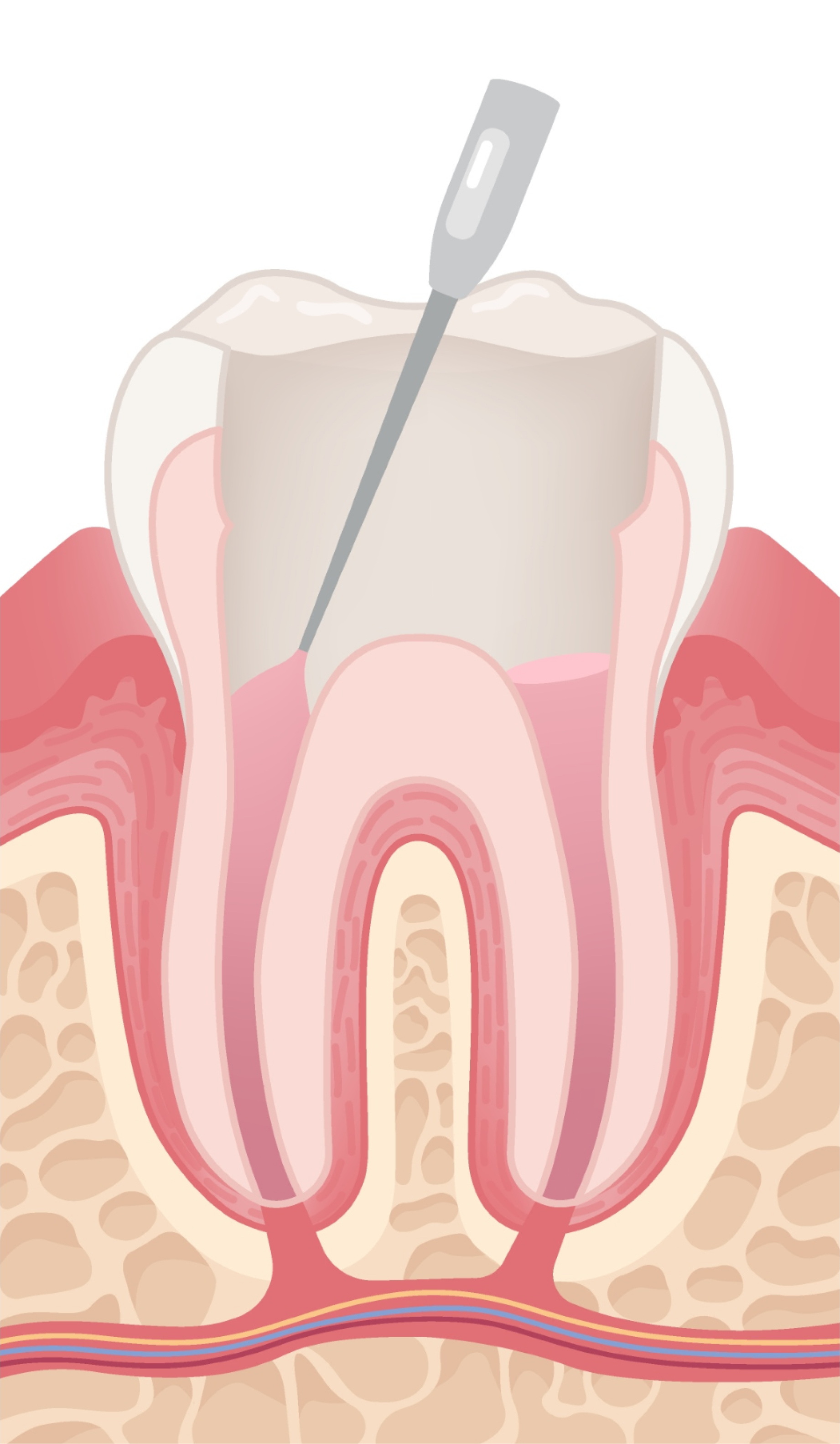 감염된 신경·혈관 조직을 근관 안쪽까지 꼼꼼하게 제거합니다.