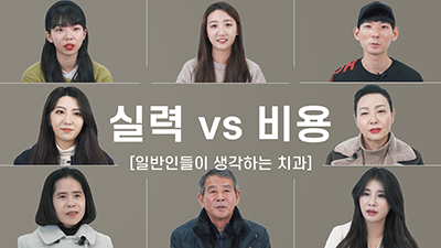 "저는 의료진실력이요" "비용도 솔직히 만만치 않죠, 무시할 수 없죠" 치과를 선택할 때 중요하게 보는 것은 무엇인가요? 평소에 생각하고 있는 치과 이미지는 어떤지 일반인분들에게 물었습니다. 00:07 Q. 평소 생각하고 있는 치과 이미지는 어떤가요? 00:36 Q. 치과 가서 치료받는 걸 미뤄본 적이 있나요? 01:01 Q. 아픈데도 치과 치료를 미루는 이유가 있을까요? 01:18 Q. 치과 선택할 때 가장 중요하게 보는 ..